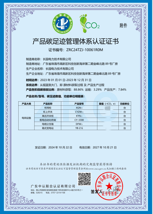 長園電力為踐行綠色發展理念、提升可持續發展領域的透明度與公信力,公示兩份產品碳足跡管理體系認證證書